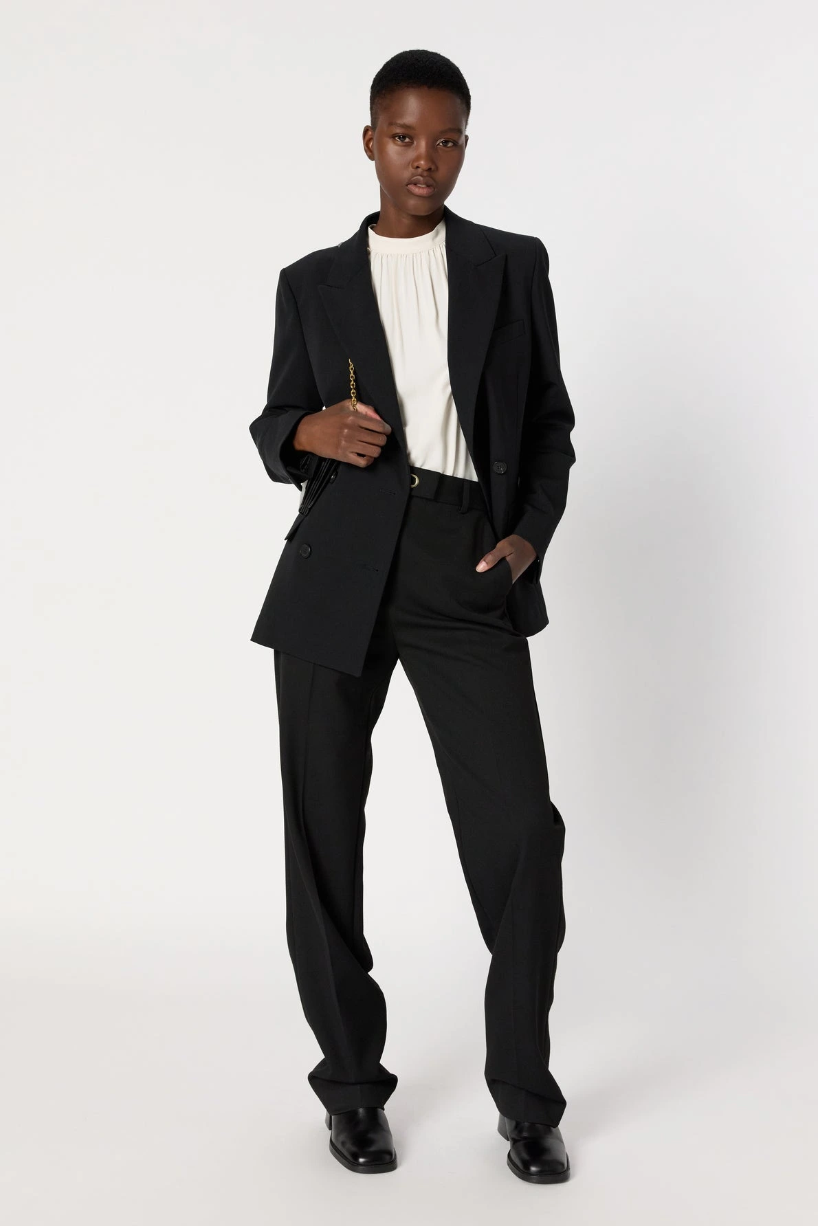 Esprit chic et classique pour ce blazer croisé noir à la boutonnière croisée. Il est confectionné dans un mélange contenant de la laine vierge. Il sophistiquera un jean ou une jupe, ou se portera avec le pantalon assorti dans un esprit tailleur.