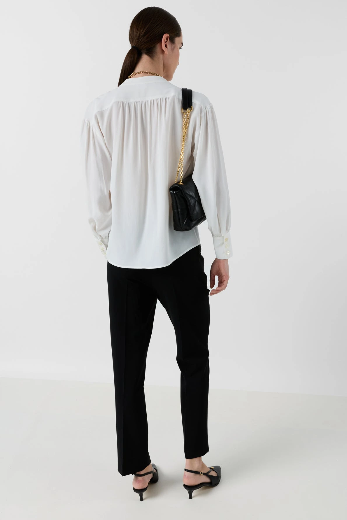 Sa coupe fluide, sublimée par des plis au dos, crée un tombé naturel et élégant. Facile à porter, elle s’associe aussi bien à un jean pour un look décontracté qu’à un pantalon habillé pour une silhouette plus sophistiquée.
