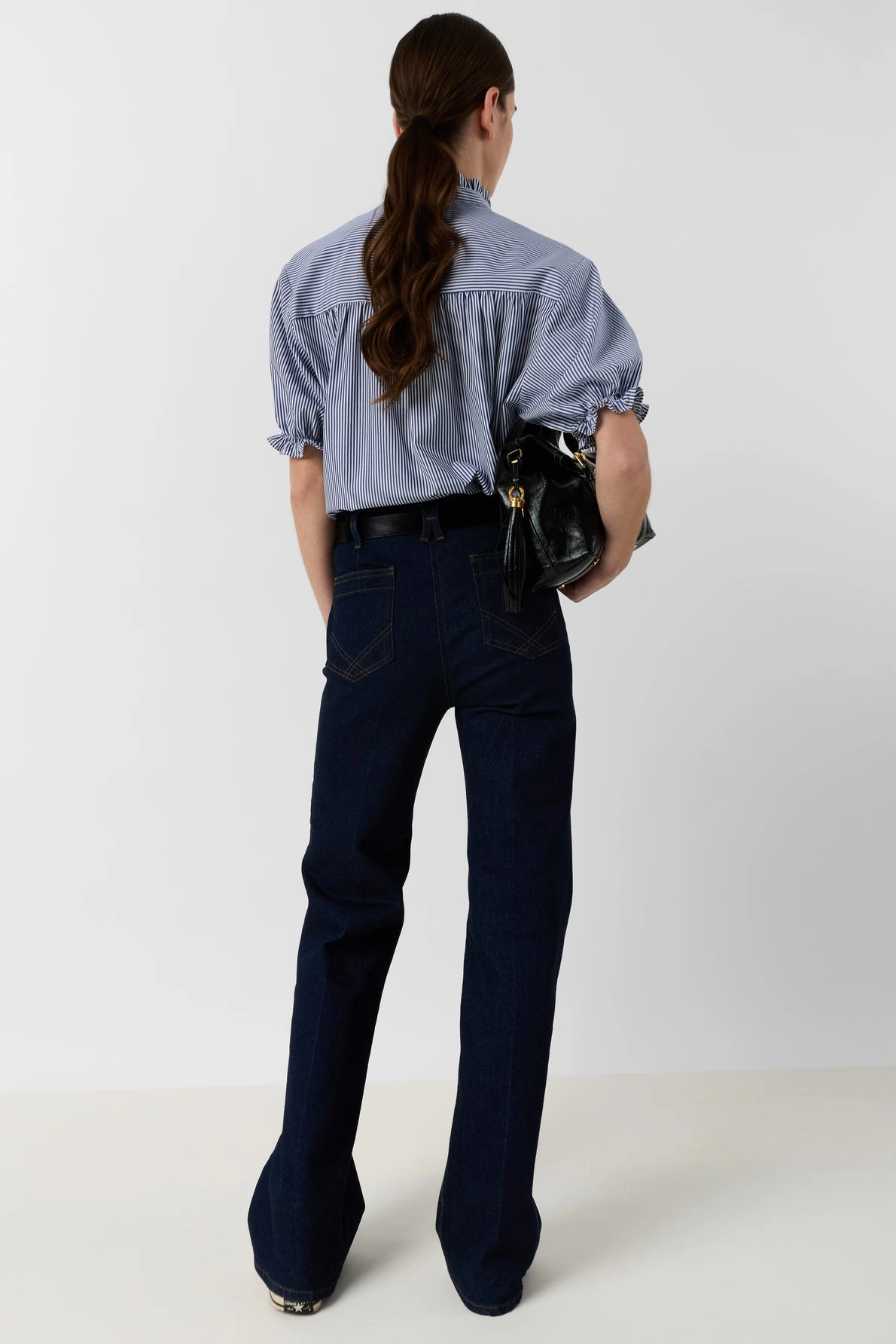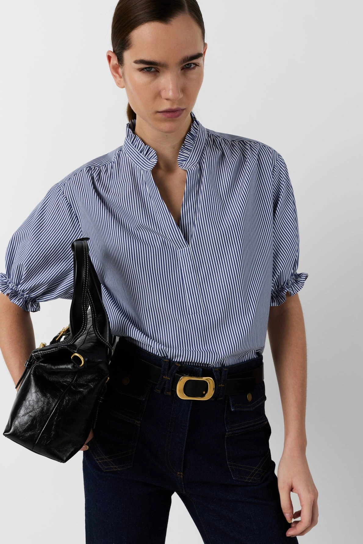 La blouse rayée Clee revisite les codes classiques avec ses fines rayures et ses détails volantés, apportant une touche féminine et contemporaine. Confectionnée en popeline de coton, elle offre une sensation de légèreté tout en conservant une belle tenue.
