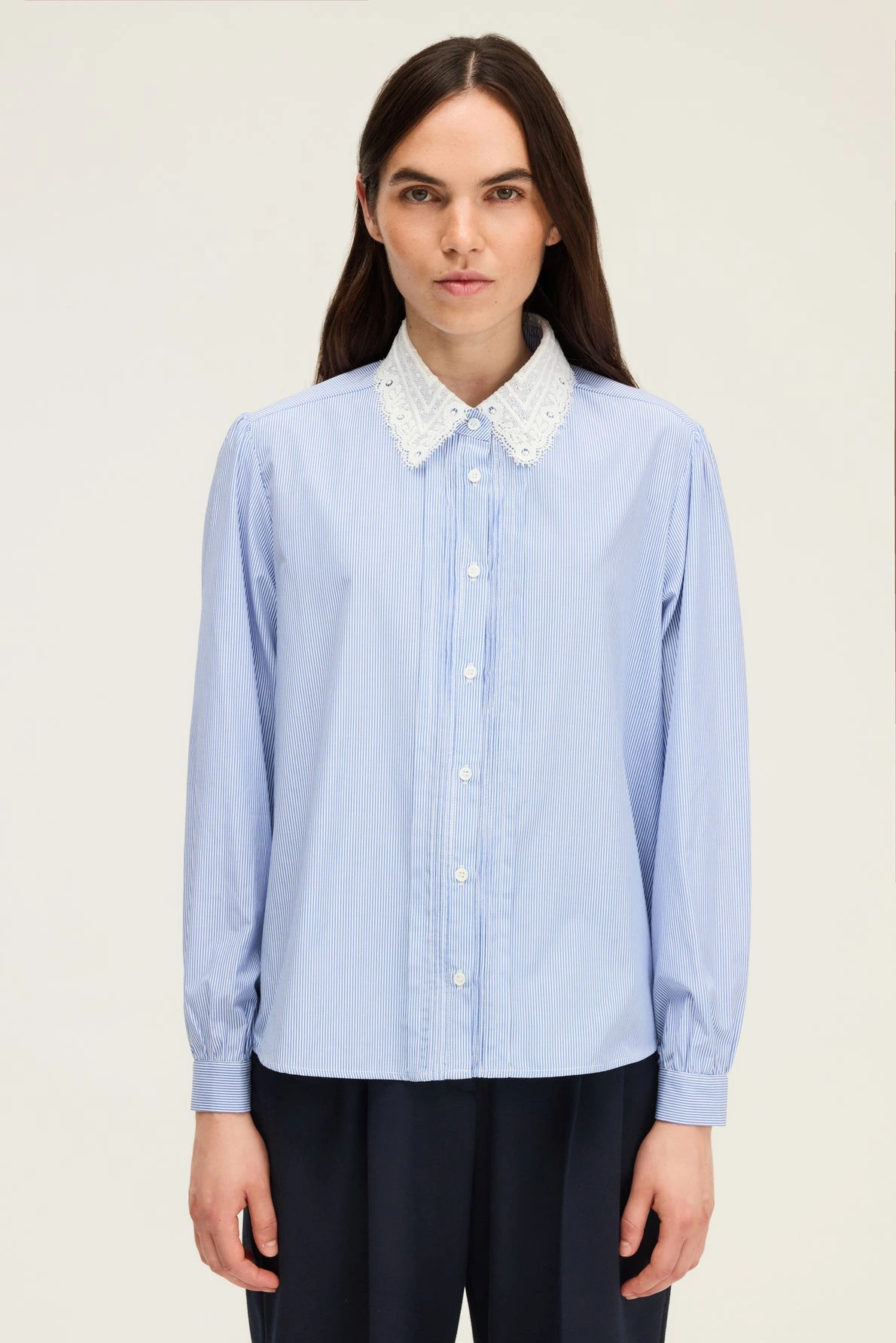Chemise à rayures et col en dentelle – AYANA