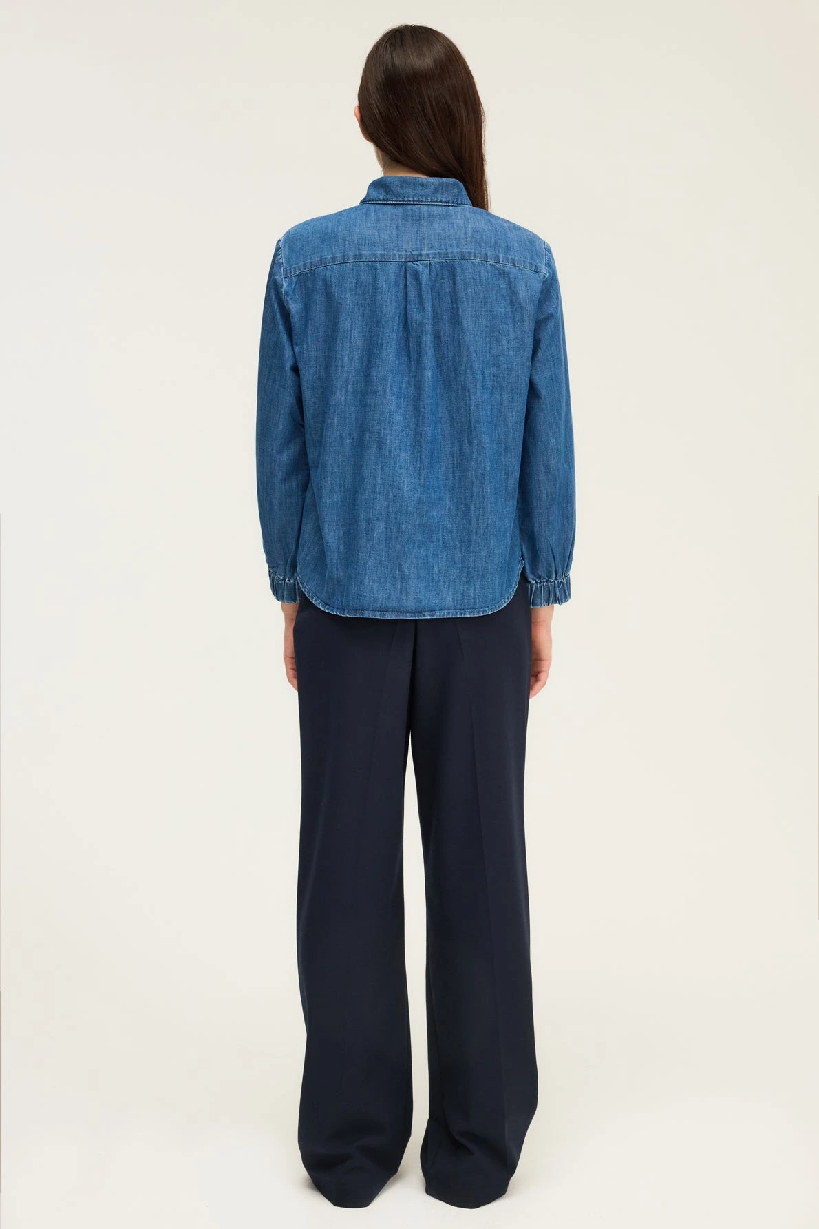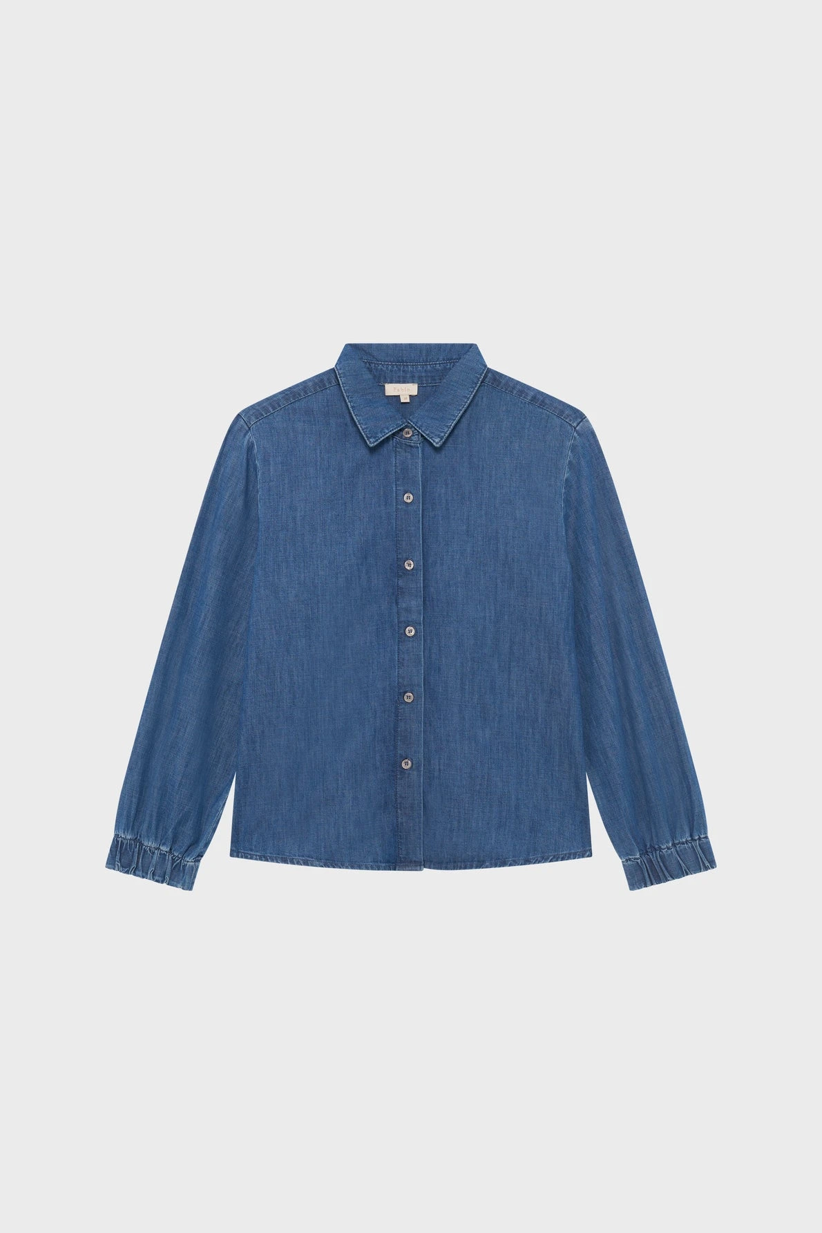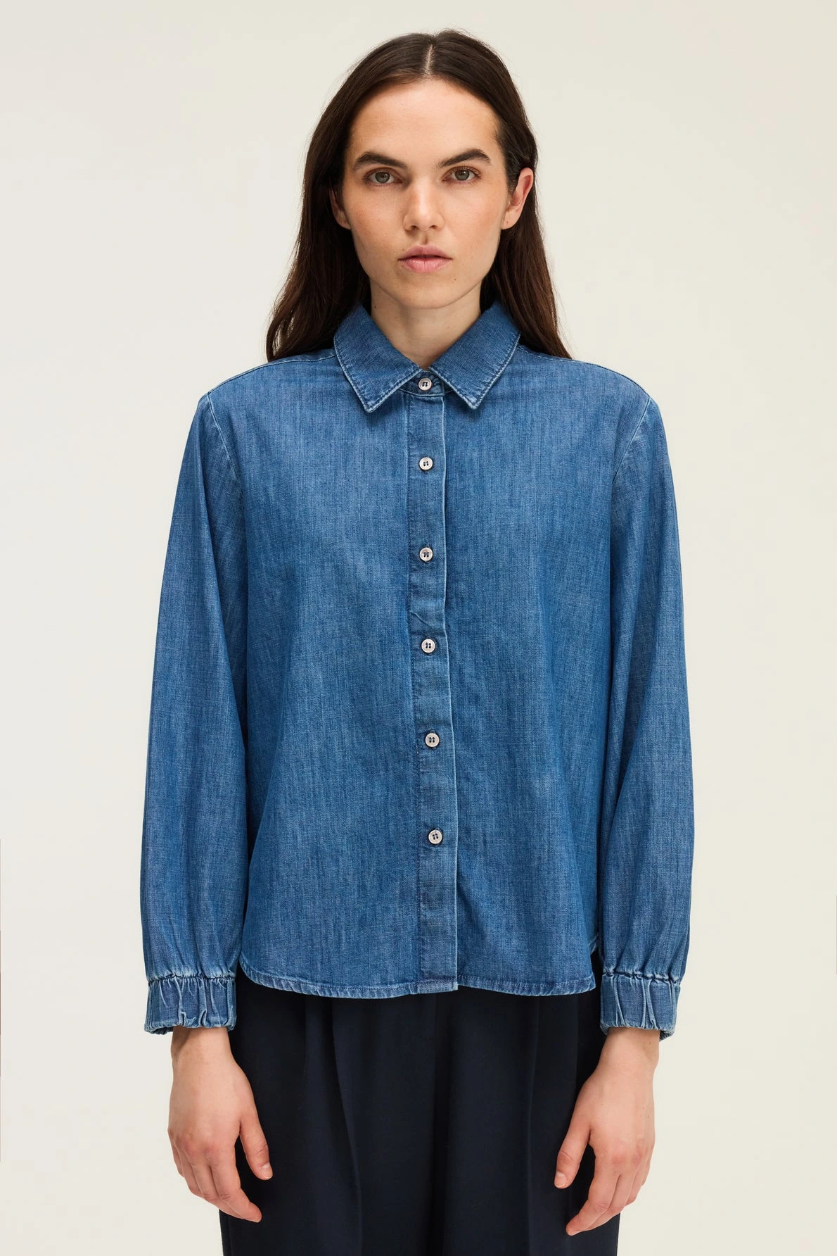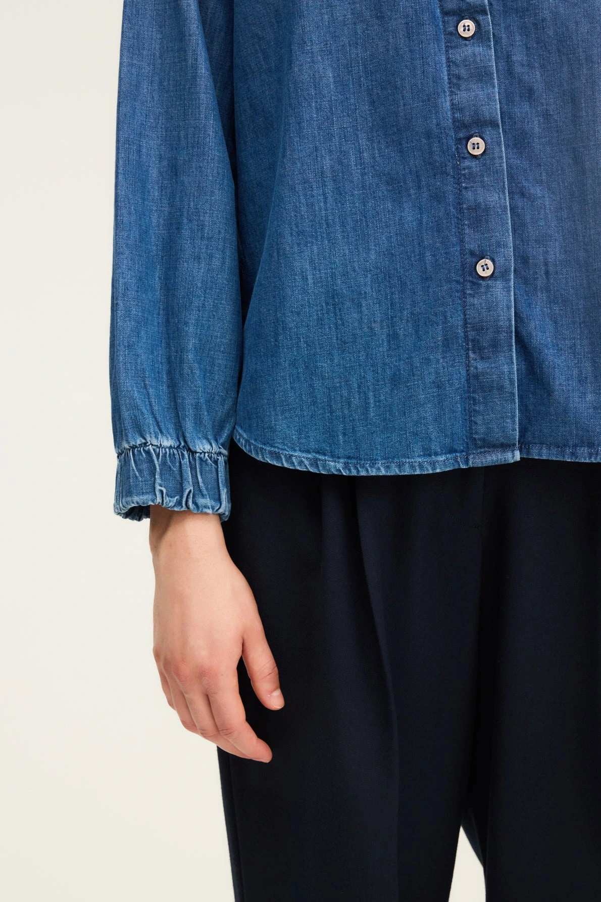 Cette chemise en jean se distingue par ses manches élastiquées. Elle est confectionnée en 100% coton.