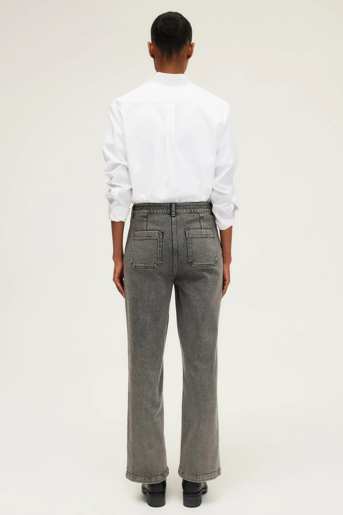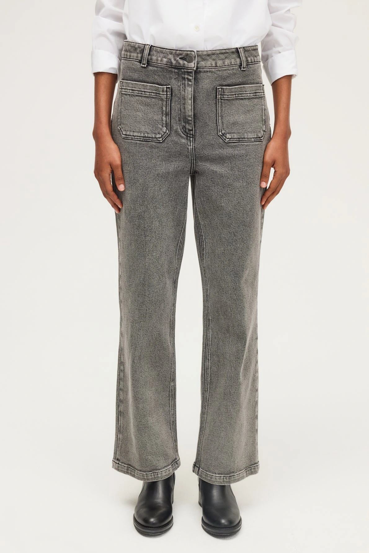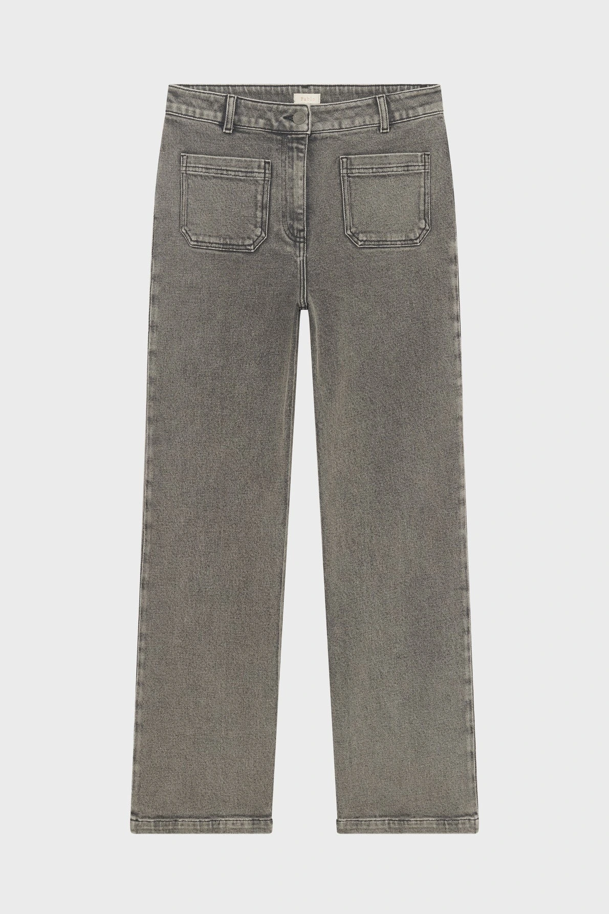 Jean droit dans un coloris anthracite clair, avec deux grandes poches ornant le devant.