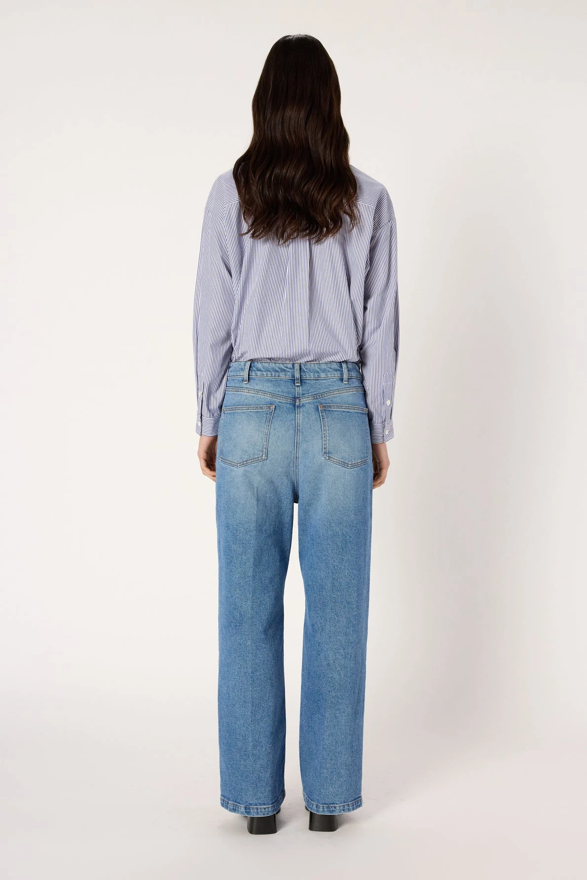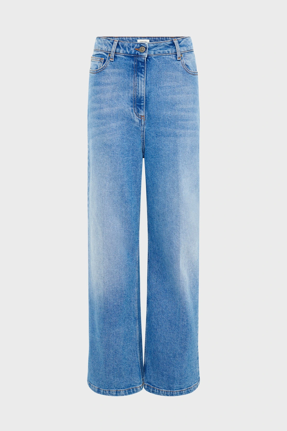 ean droit et large de coloris bleu ciel dans un esprit classique. A porter avec une veste pour le sophistiquer, ou jouer le côté casual avec un pull en laine.
