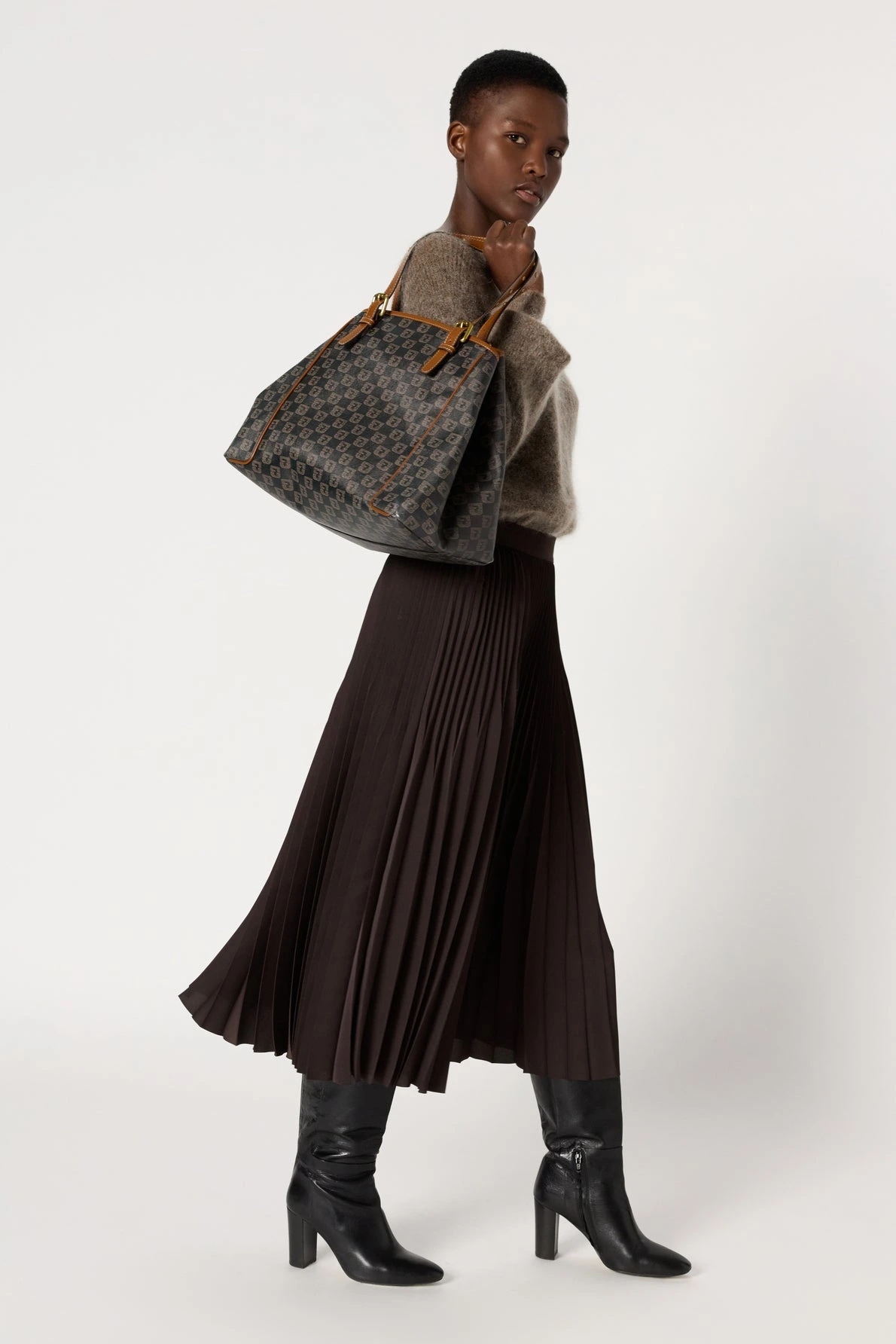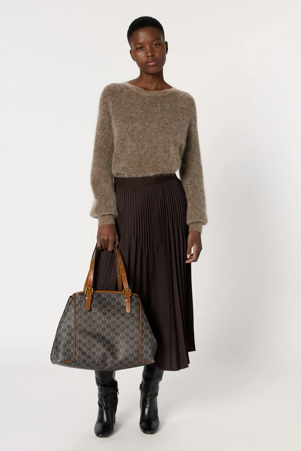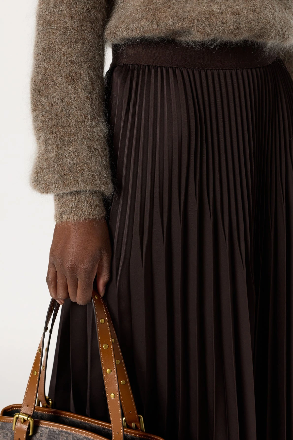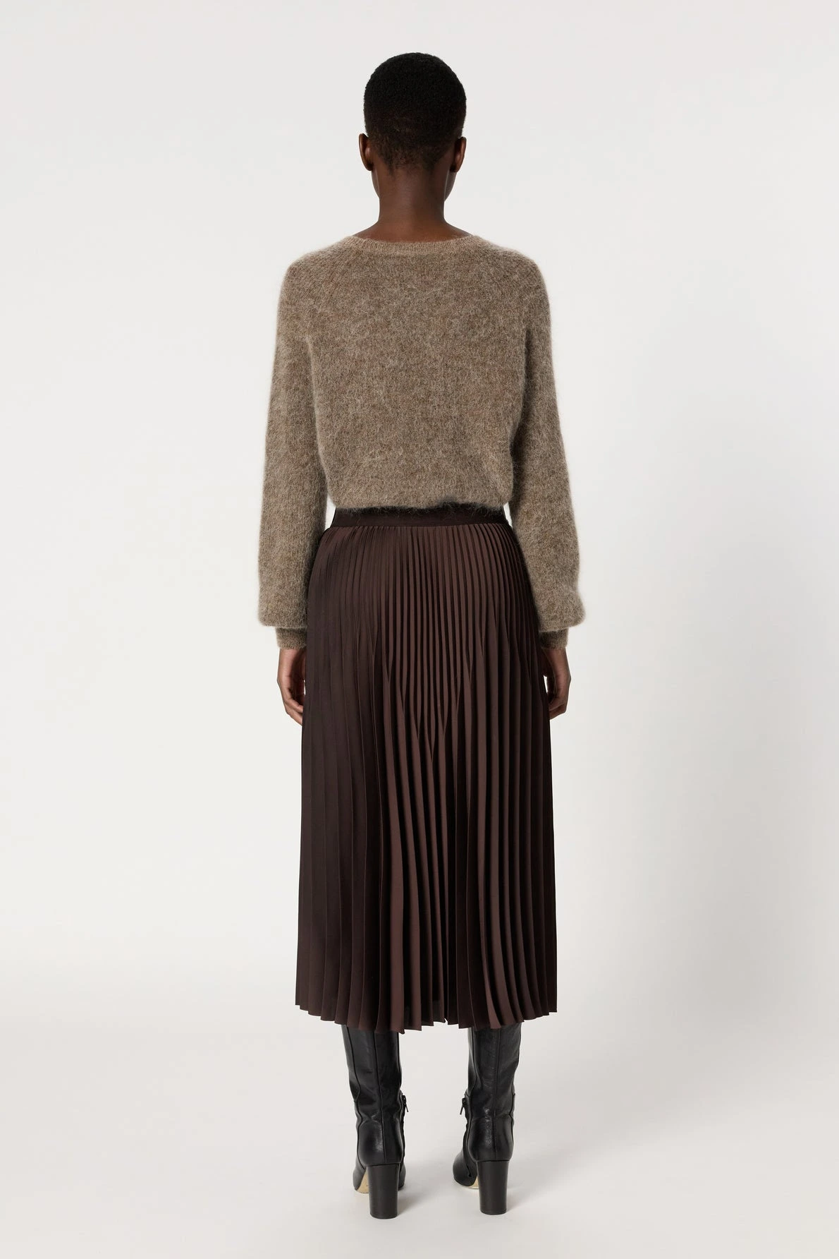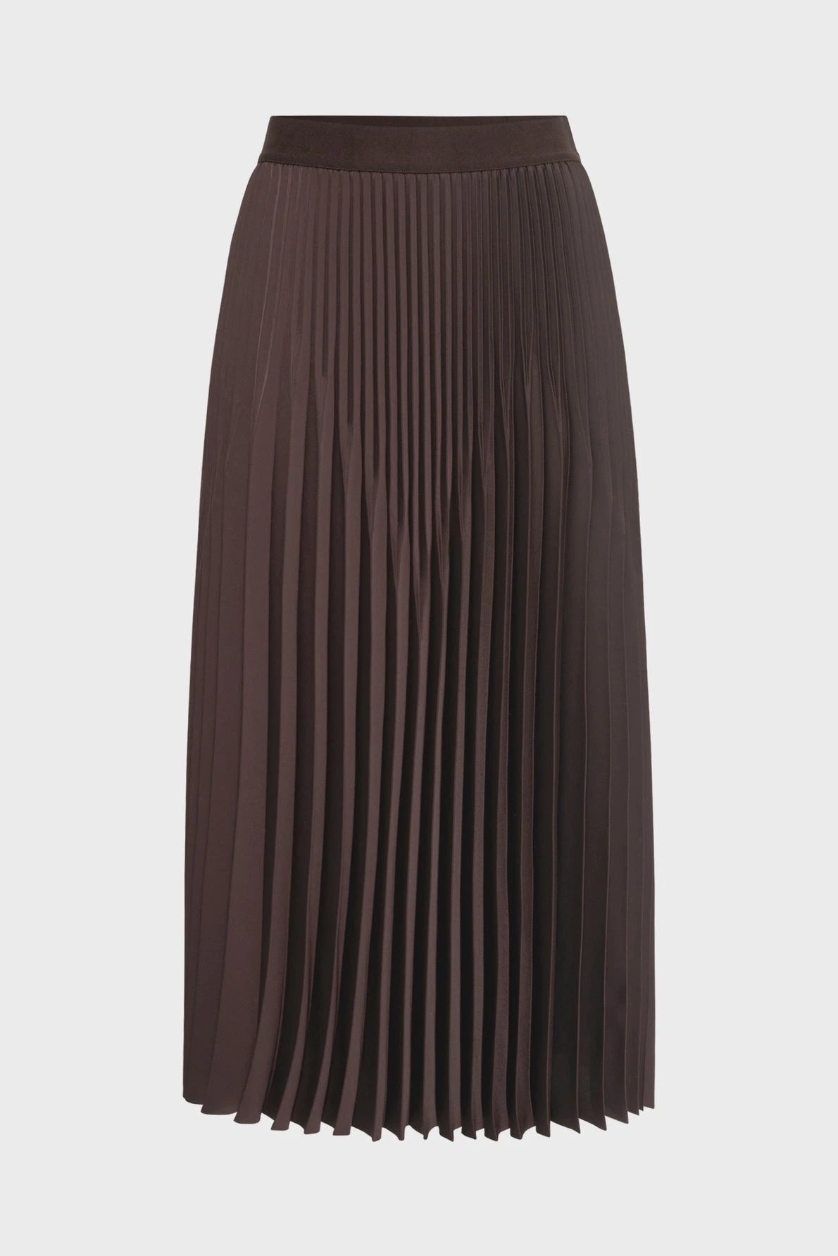 Allure classique chic pour cette jupe plissée, à porter casual ou sophistiquée avec un blazer et des talons. Elle est confectionnée dans une matière à l’aspect satiné et qui offre à son coloris marron des reflets chatoyants.