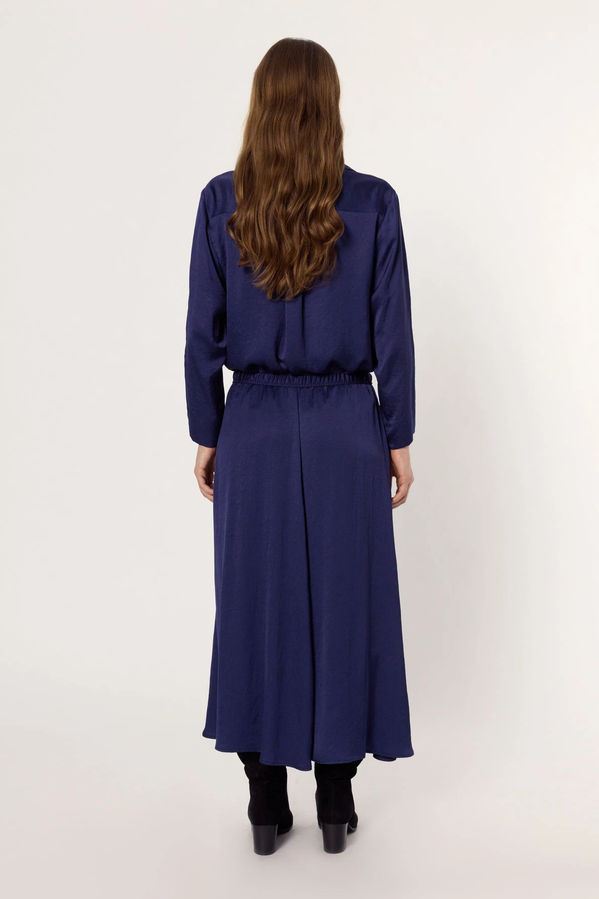 Allure à la fois sophistiquée et moderne avec la jupe satinée Bella. Confectionnée dans un tissu fluide, elle offre une grande liberté de mouvement tout en mettant la silhouette en valeur. Sa matière satinée donne à son coloris marine des reflets intenses.