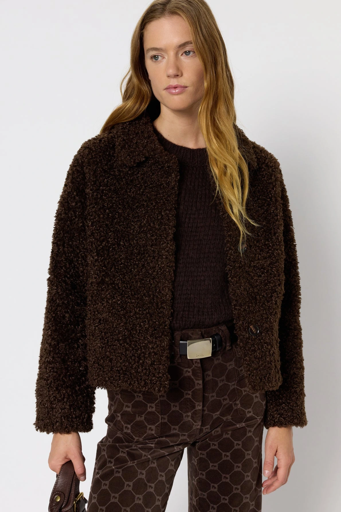 Confectionné en fausse fourrure à l’aspect bouclé, le manteau court en fausse fourrure Mavis est l’accessoire tendance de l’hiver. Chaud et doux, il se portera avec un slim et des bottes dans un esprit délicieusement seventies. Il est décliné en marron et doublé en suédine synthétique au toucher velours.