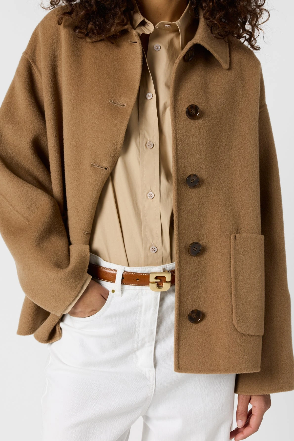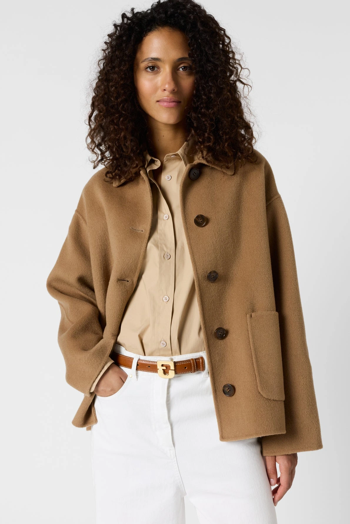 Le manteau court en laine Perrinea adopte une silhouette ample et moderne, pensée pour apporter confort et caractère au quotidien. Confectionné en laine double face, il offre une sensation douce et équilibrée, idéale pour la mi-saison.
