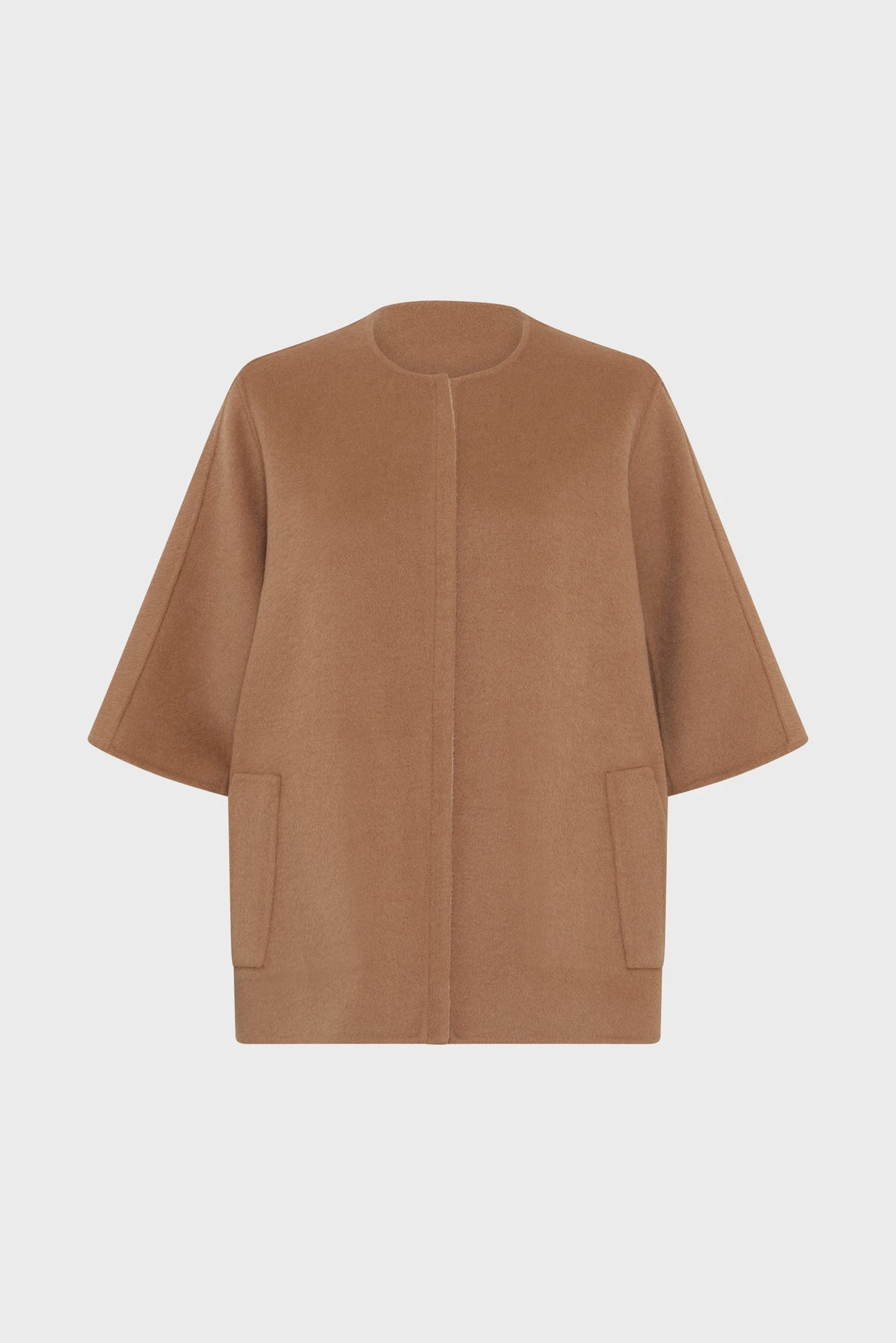 Le manteau court réversible Prissy adopte une ligne contemporaine avec sa coupe droite, son design sans col, et ses manches 3/4 une allure à la fois sobre et structurée. Confectionné en laine double face, il offre douceur et confort tout en conservant une belle tenue.