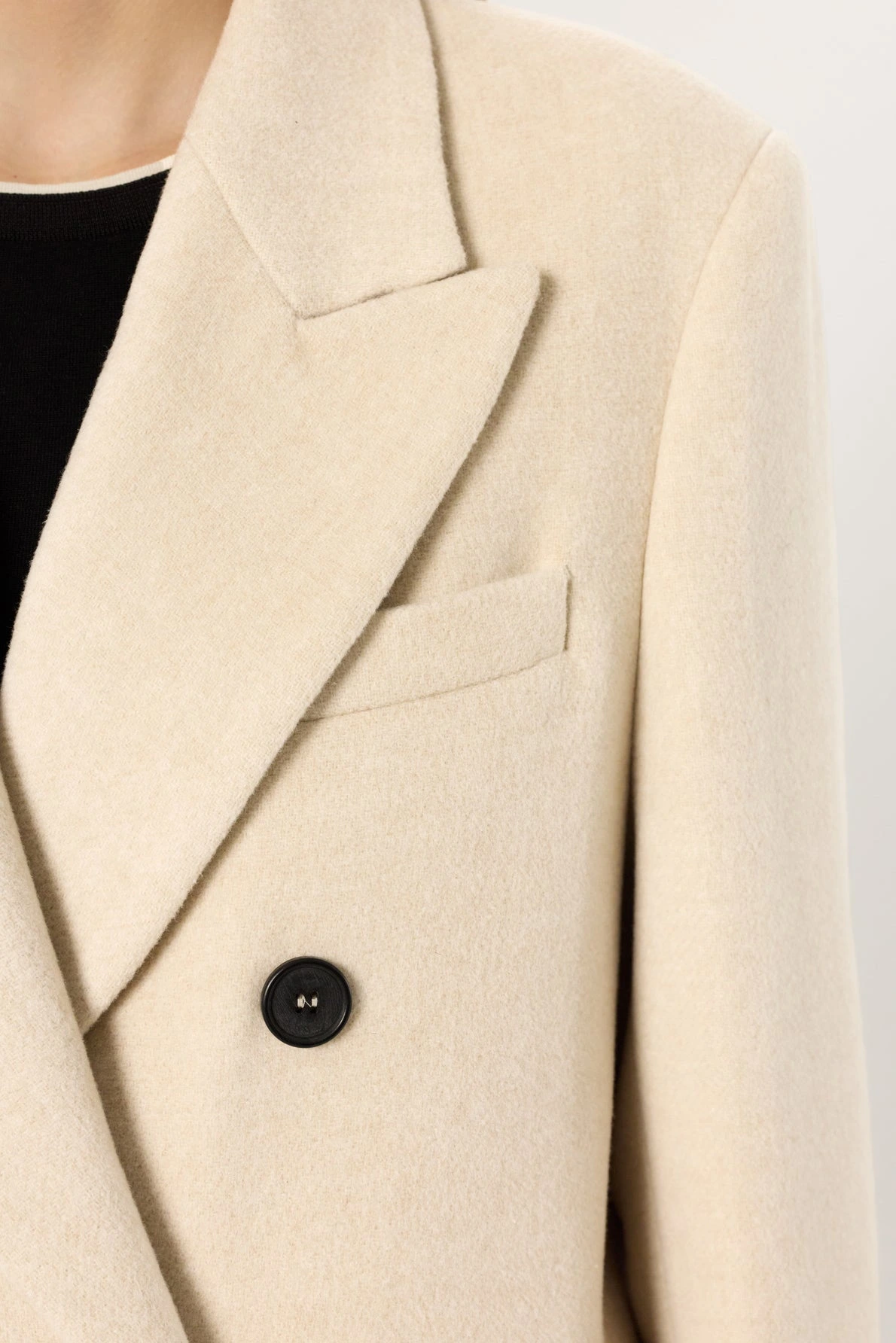 • Fermeture croisée, manteau fermé par six boutons