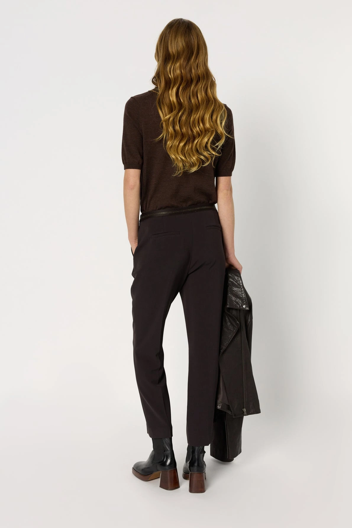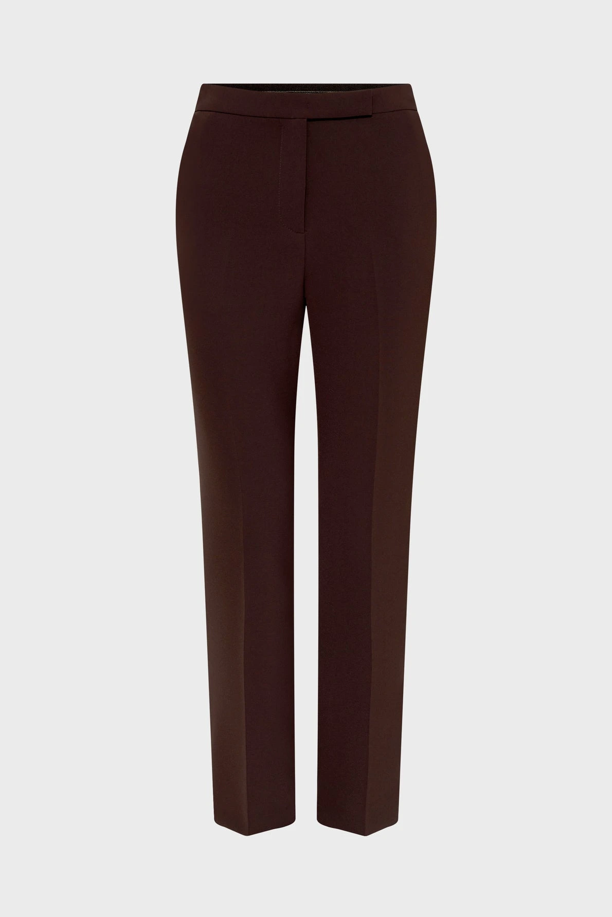 Pantalon droit de tailleur au dos élastiqué pour un plus grand confort. Confectionné dans une matière fluide marron dans un esprit classique chic. Peut se porter avec la veste assortie.