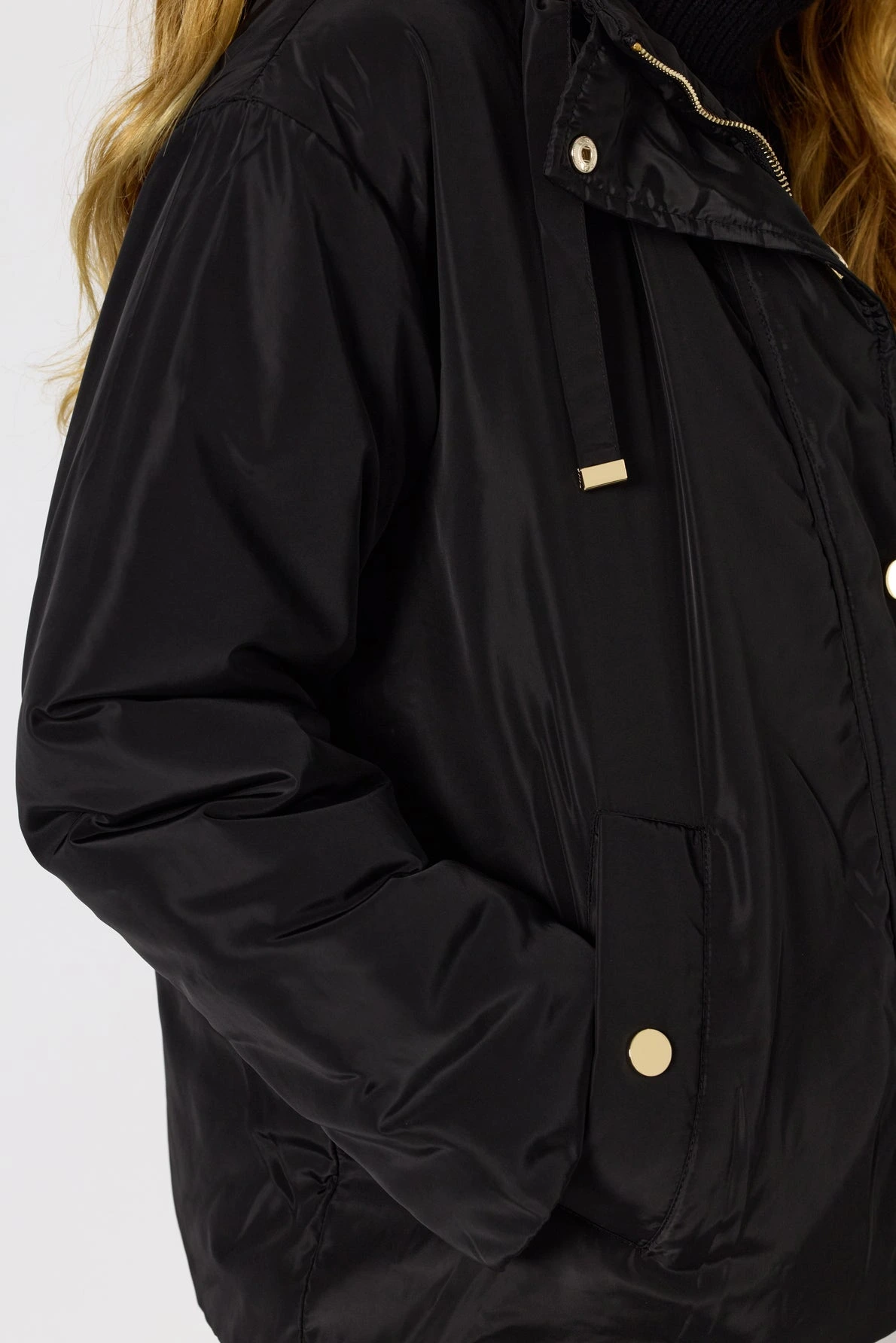 Confectionné en polyester technique, la parka courte à capuche Marissa allie la praticité au style. Ses épaules tombantes renforcent l’allure décontractée et contemporaine. Elle est proposée en noir rehaussé par des boutons dorés.
