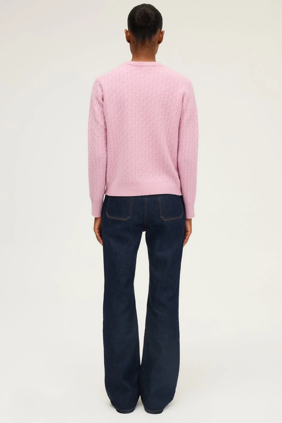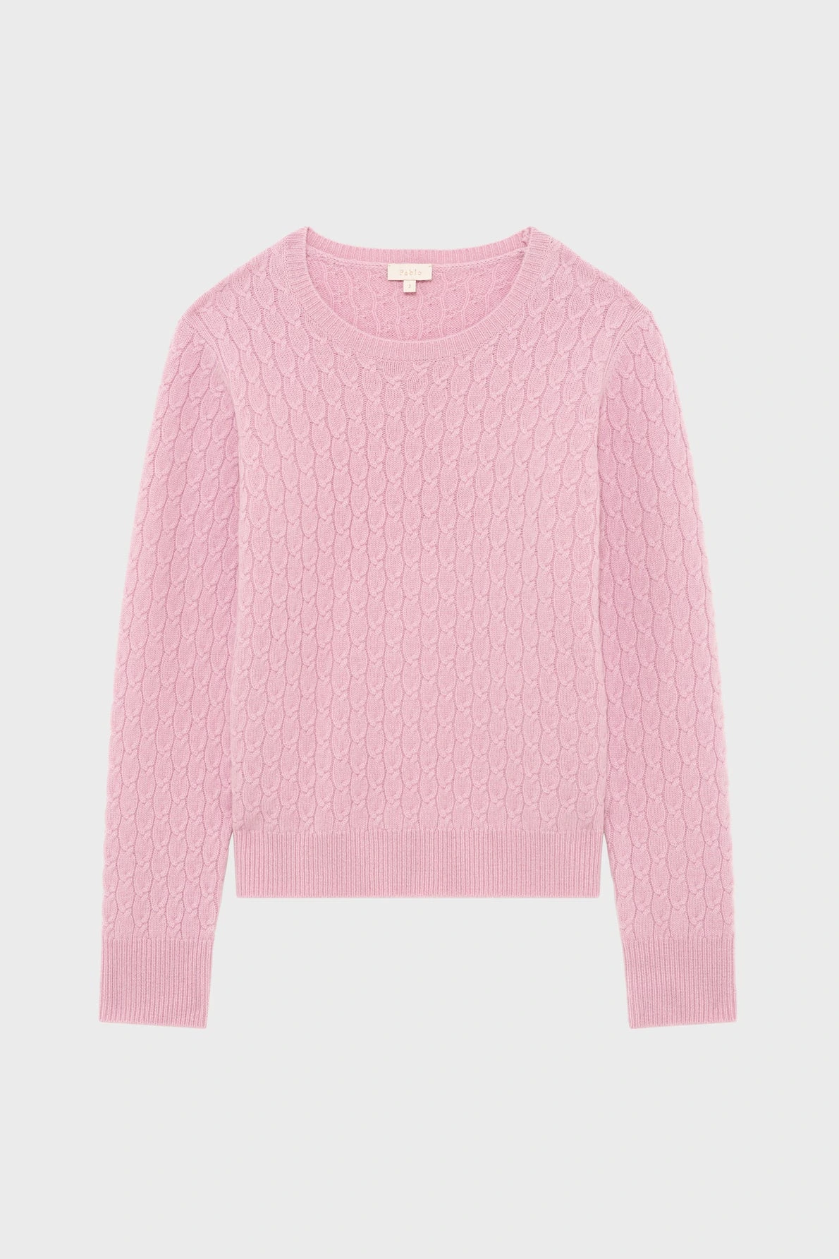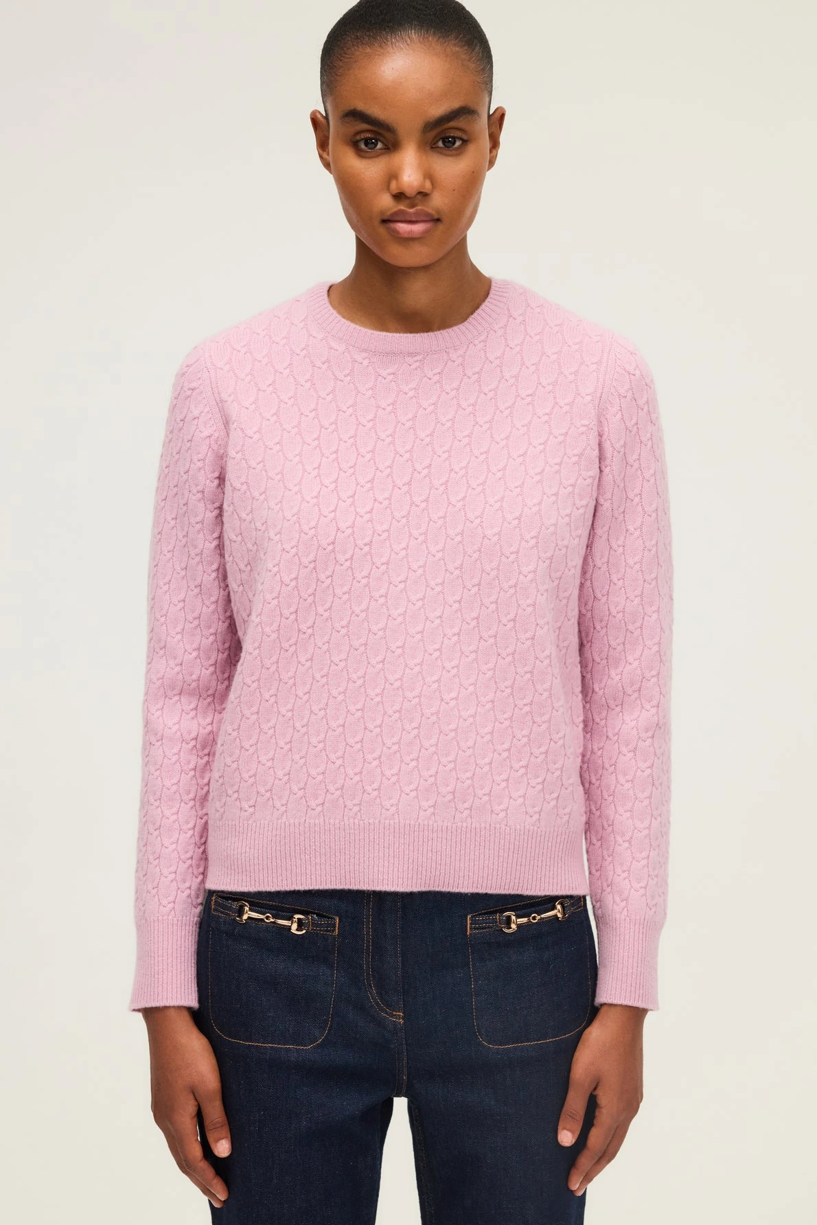 Pull à torsades en 100% laine dans un esprit à la fois chic et casual. Son coloris rose sera idéal avec des teintes foncées mais aussi des beiges et des blancs.