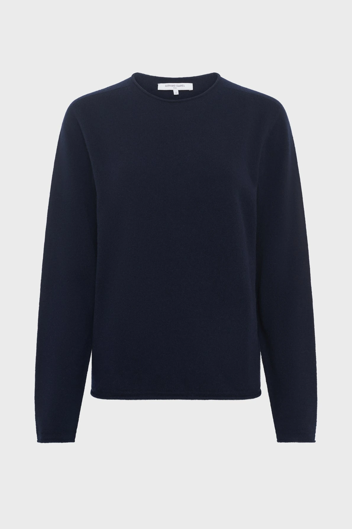• Finitions roulotées au col, dans le bas du pull et dans le bas des manches