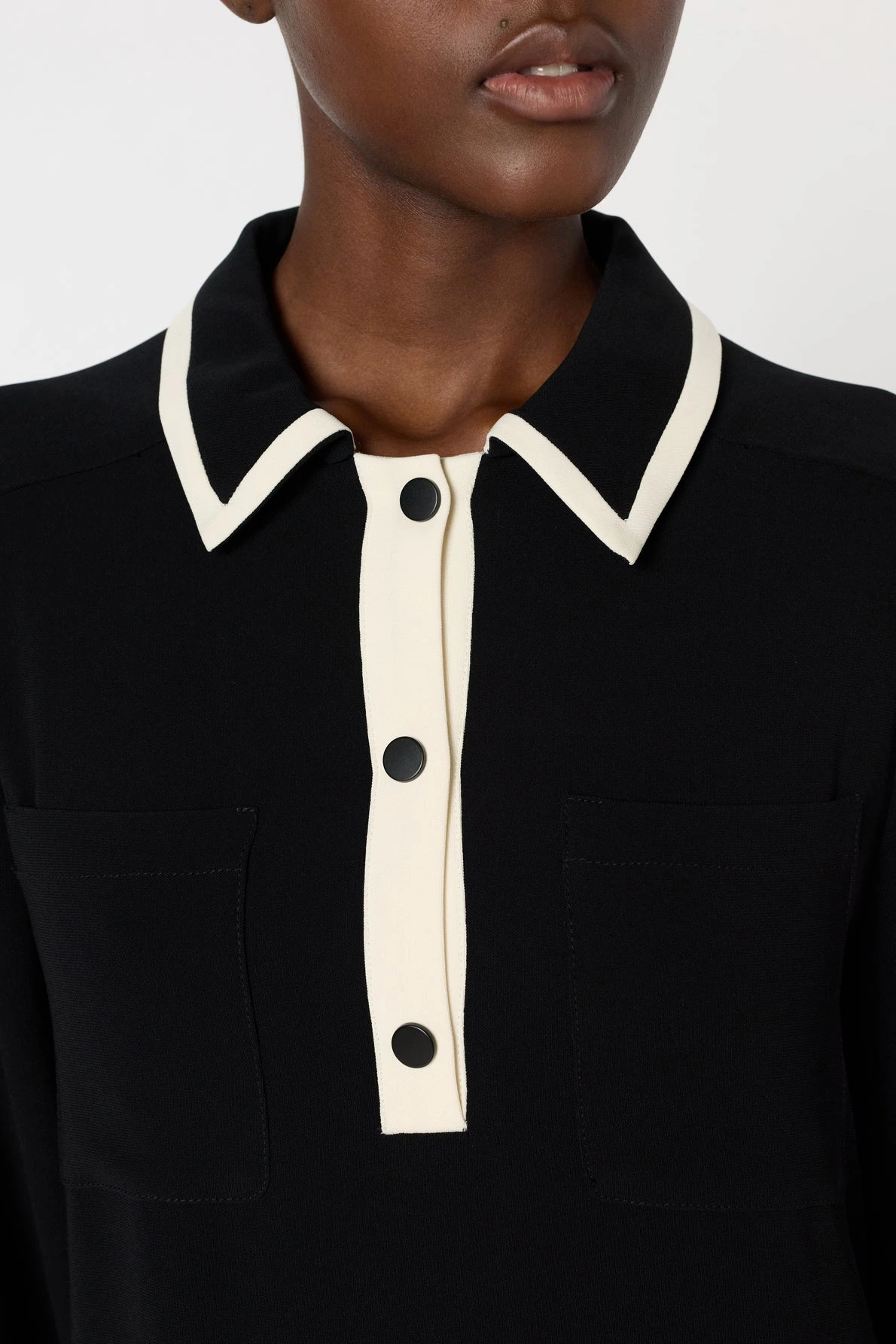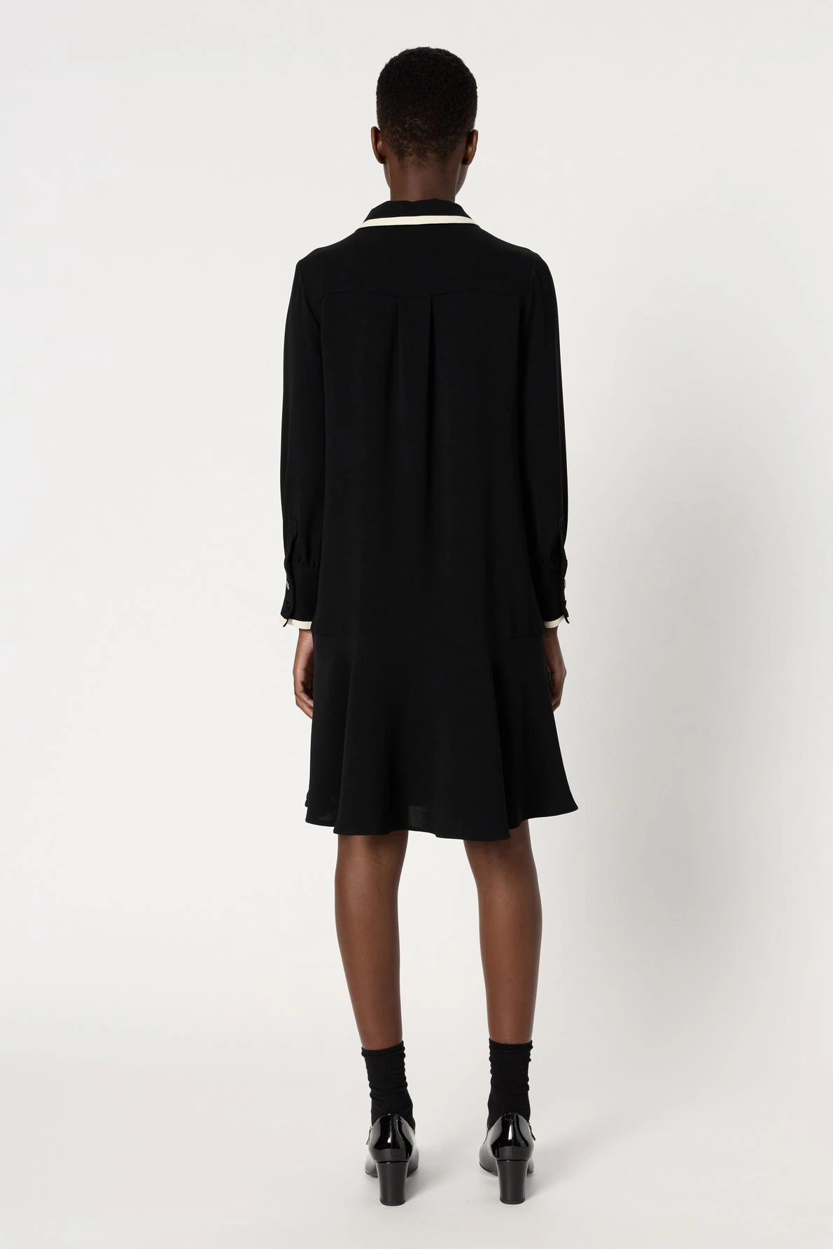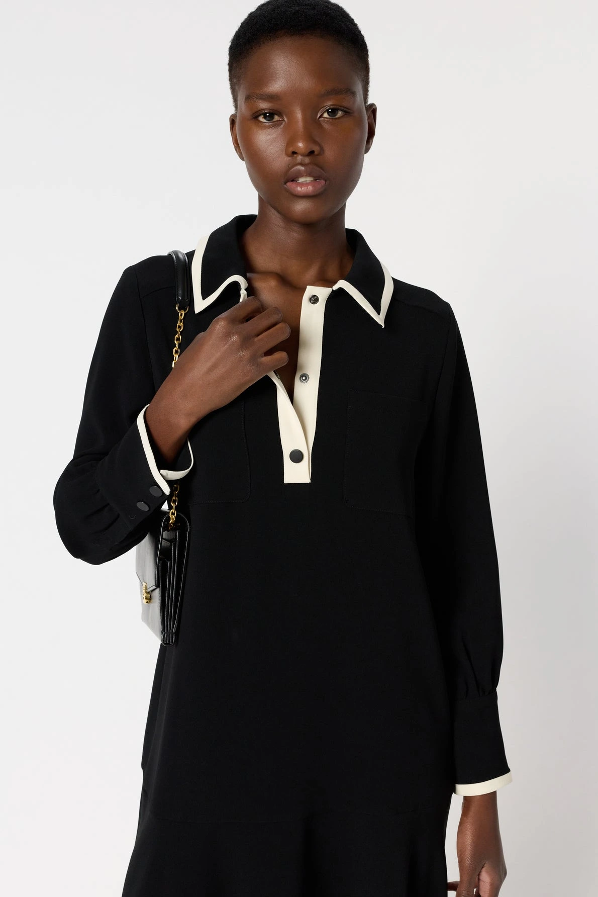 La robe bicolore Livia impose son look chic et rétro avec son col chemise, son encolure bicolore et son tombé volanté. A porter avec des bottes ou des babies pour jouer le côté sixties. Confectionné en microfibre fluide.