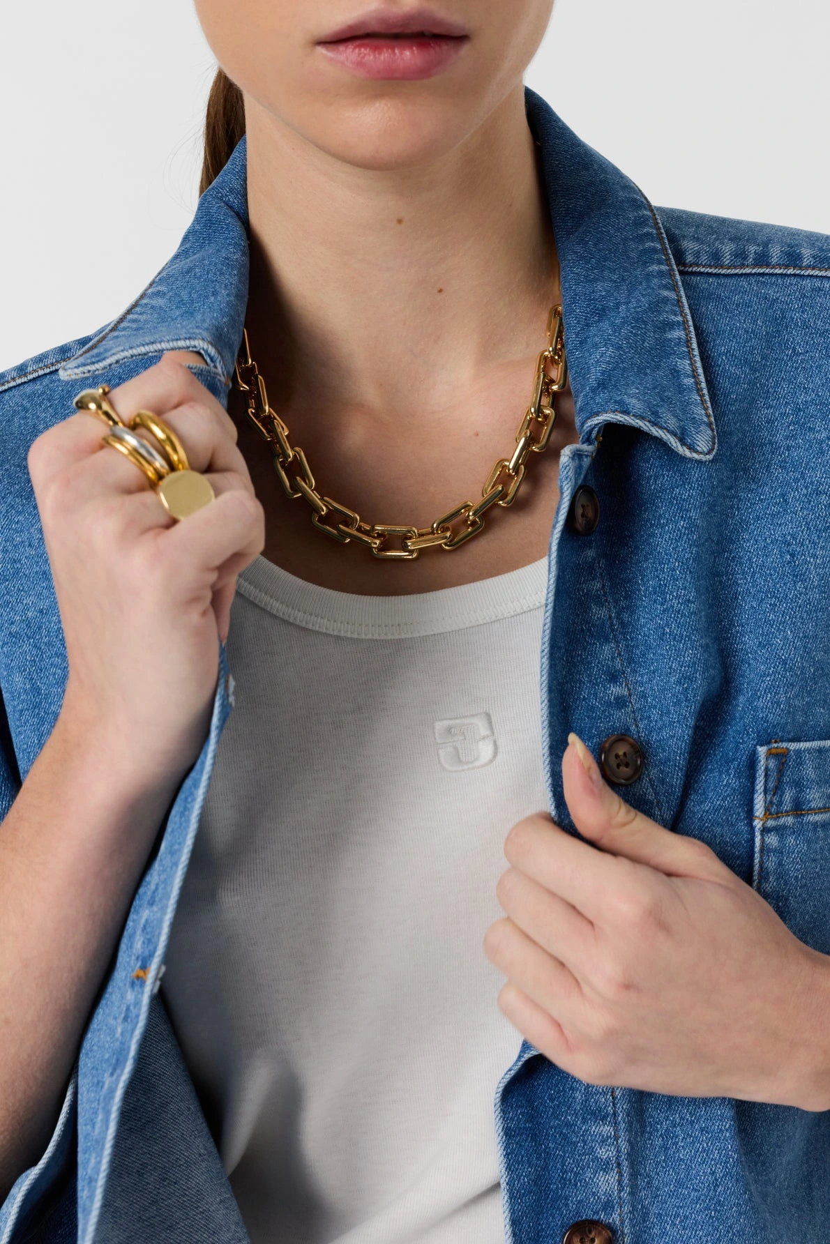 Cette surchemise en denim bleu, à la coupe ample et aux épaules tombantes, mêle confort et style contemporain. Son col structure la silhouette tout en gardant une allure décontractée. Portée avec le jean assorti, elle créé un total look denim au style affirmé.