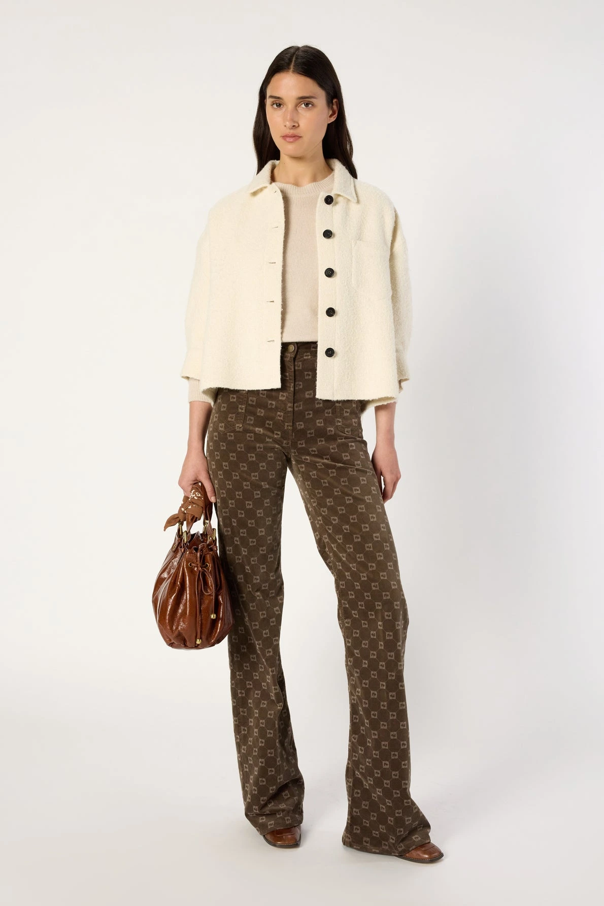 Esprit contemporain pour cette surchemise en tweed écru avec des boutons noirs contrastés. Confectionnée dans un mélange contenant du coton, de la laine et de l’alpaga, elle est idéale pour l’entrée de saison.