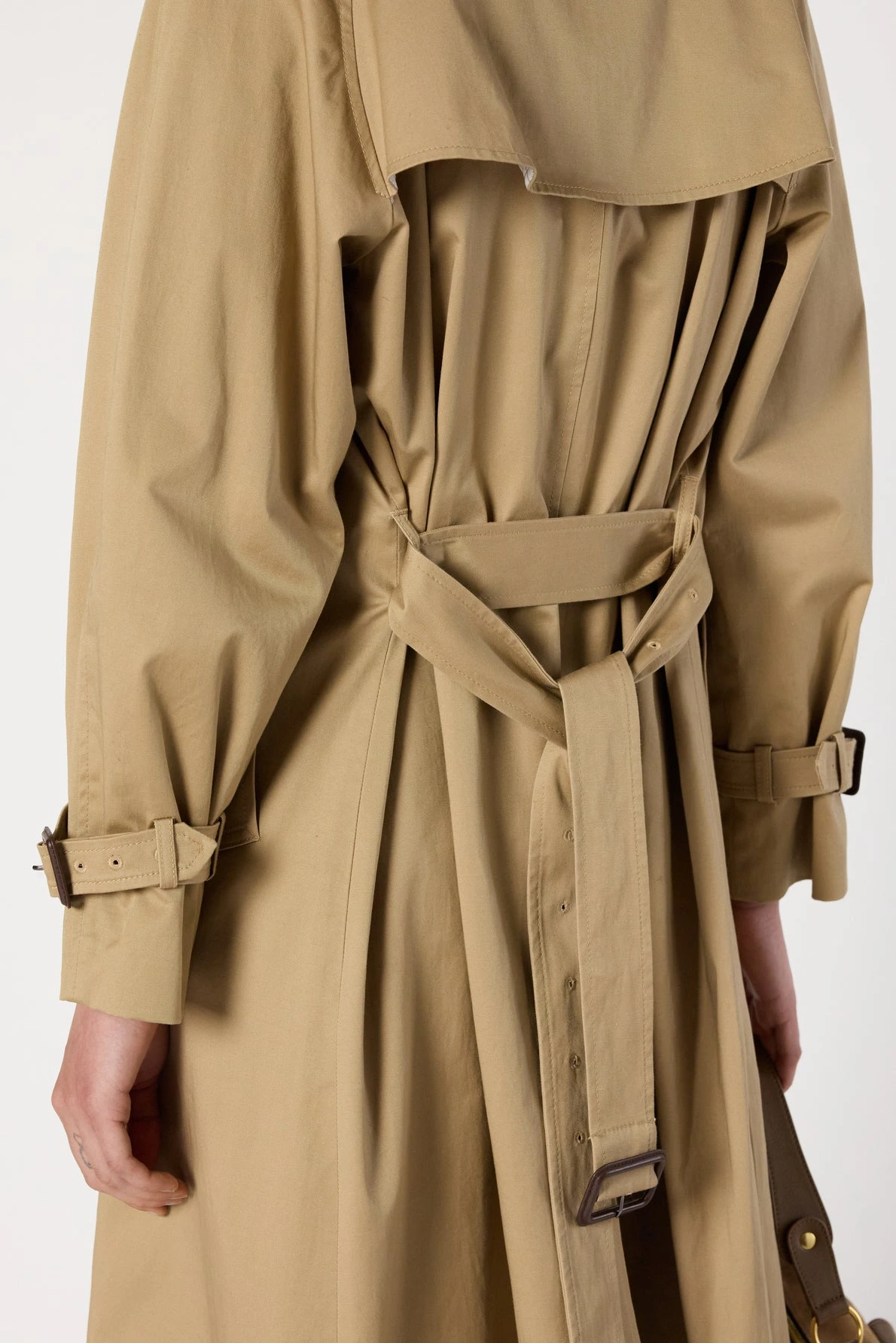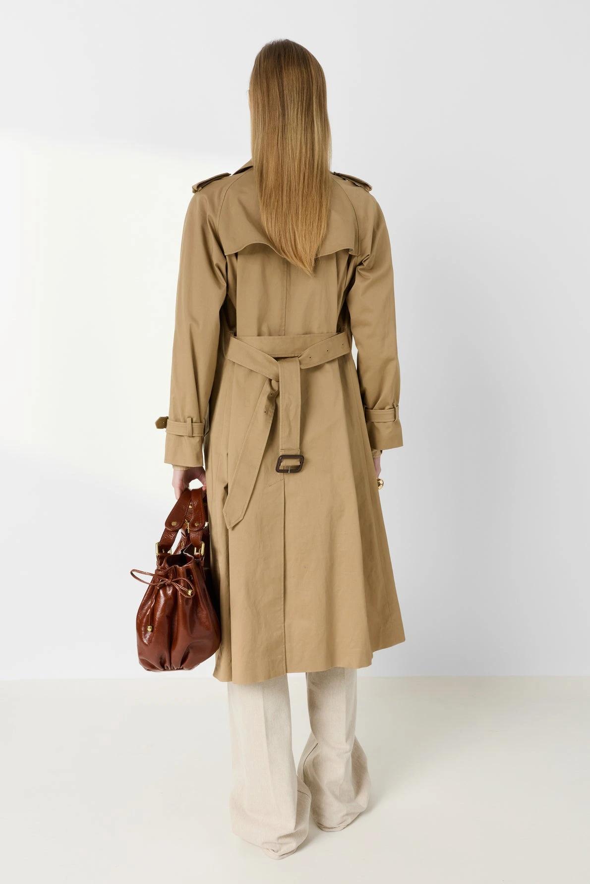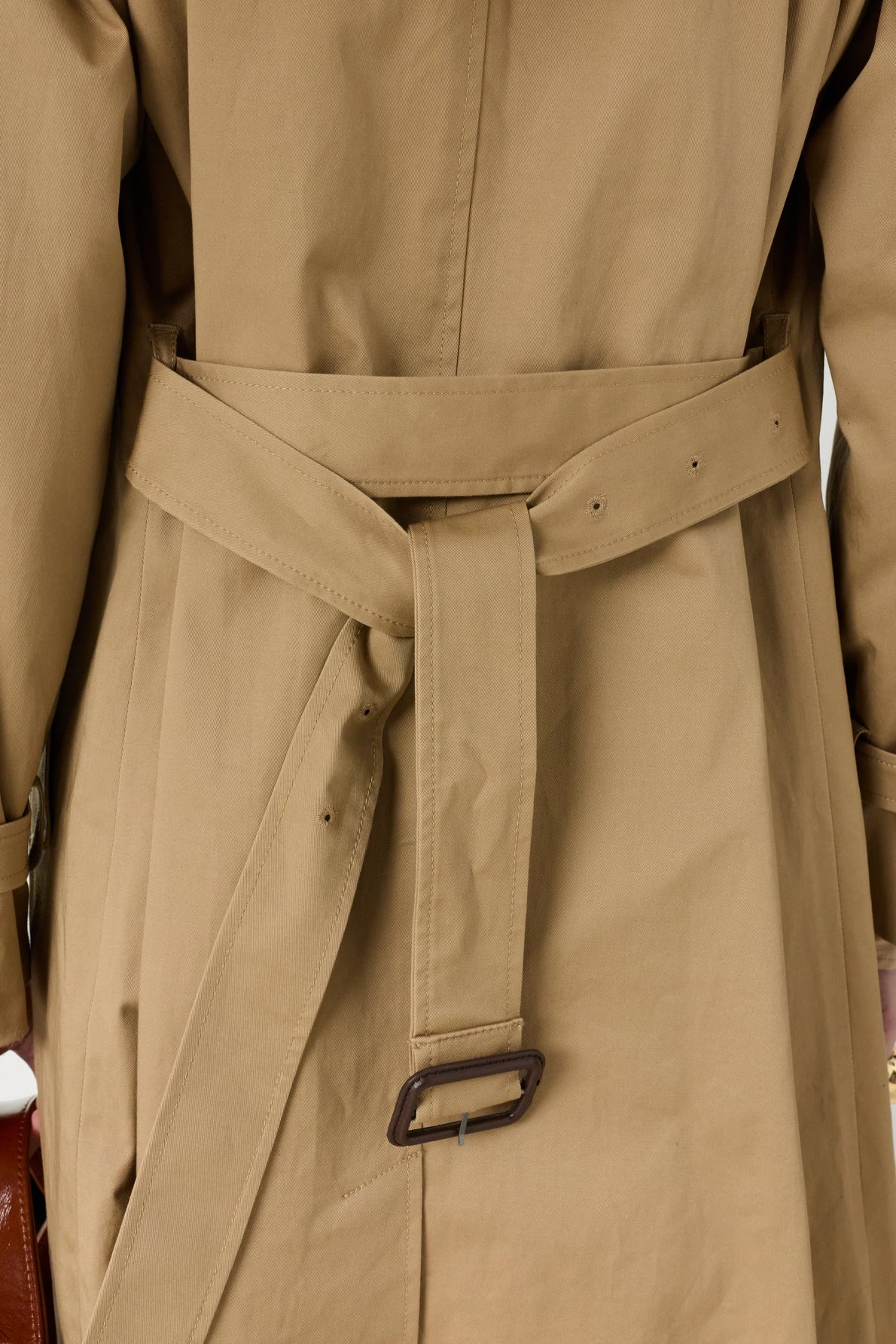 • Finitions trench : pattes d’épaule, fermeture par agrafe au col, bavolet au dos, poignets ceinturés, ceinture à boucle
